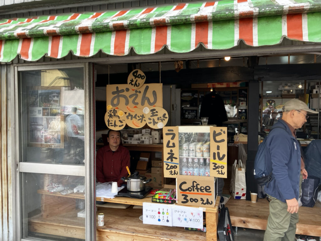 いよいよ飯能秋まつりです。夏まつりに続いて、今回もオープンサイト建築事務所をお借りして、出店させていただくことになりました。おでんとビールとラムネと珈琲、それから看板おじさんのピカピカ光るおもちゃも販売しています。この2日間は天候にも恵まれ、おかげさまで売れ行きも順調でした。